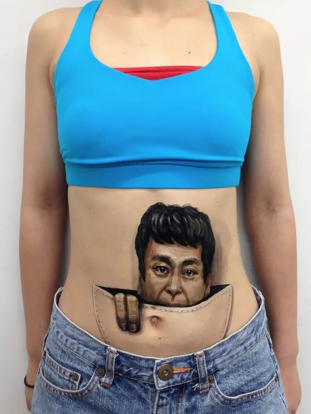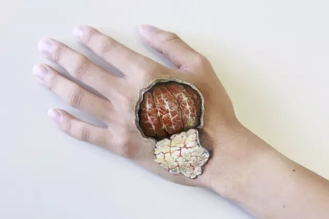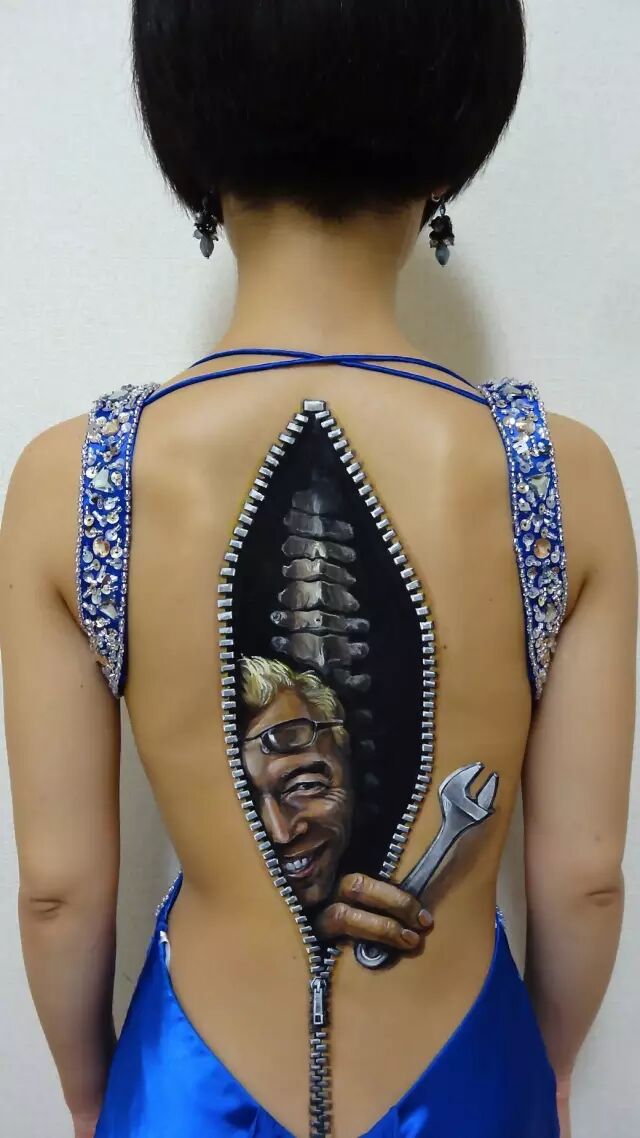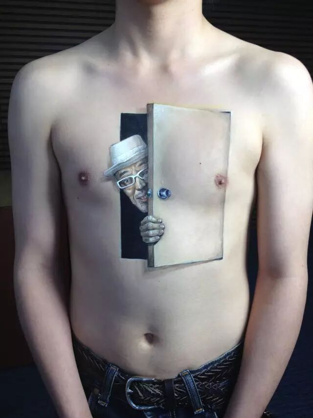 第一次嘗試在人體上作畫還是升學落榜的那段時間。如果把隨手的塗鴉畫到紙上的話,感覺好浪費紙,所以就乾脆用自己的手當畫布了。那一次,在手上畫了朋友的眼睛。