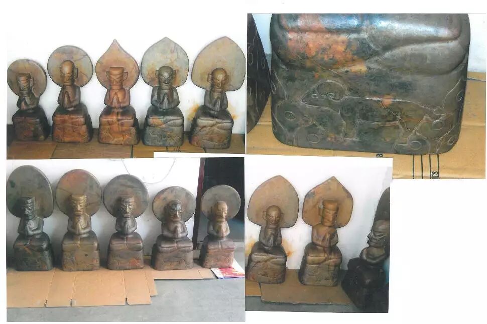 (一組12生肖與佛像組合在一起的玉器。上右是佛像底部的十二生肖之一的“羊”,每尊都在後面有古文字與佛像圖)