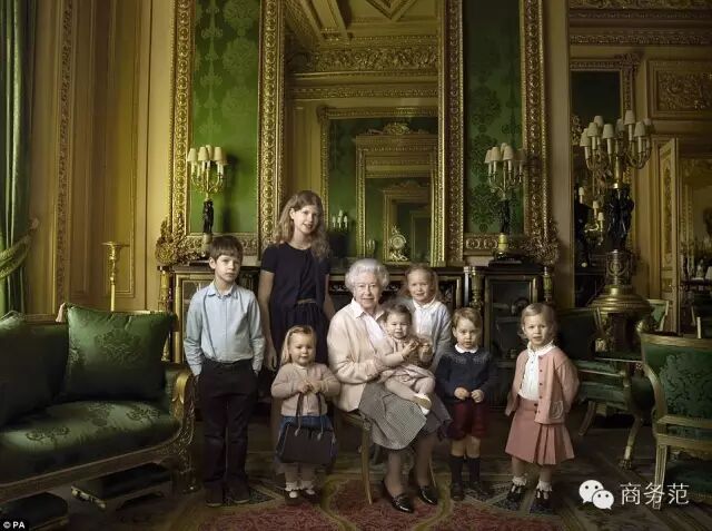 範主po的這張,是女王與眾“孫子孫女”的全家福,這還是女王第一次和小輩兒們單獨合影↓