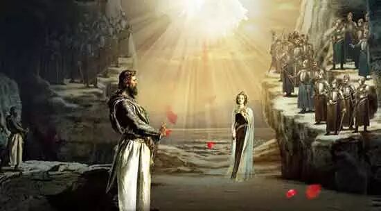 《飛翔的荷蘭人》,還稱不上是部音樂劇,但也不是傳統的歌劇。全劇不間斷地演出,講一位遭詛咒的水手必須獲得自我犧牲的愛情才能得到救贖的陰暗敘事劇。這部作品已經具備典型瓦格納歌劇統的世俗化基督教贖罪觀念。