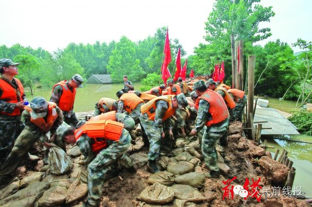 再看看我們熟悉的抗洪場面: