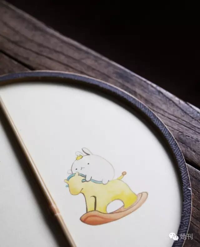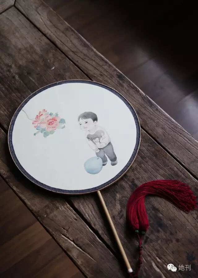 也可將小朋友的照片臨摹到扇面上,一片天真爛漫