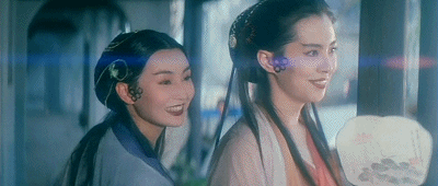 90年代徐克的經典電影《青蛇》裡,張曼玉演的“小青”也是輕握團扇,眉頭輕蹙,似怒似嗔餘味悠長: