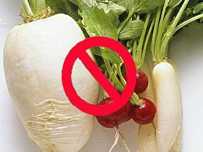 近年來科學家們發現,蘿蔔等十字花科蔬菜進入人體後,經代謝很快就會產生一種抗甲狀腺的物質----—硫氰酸。該物質產生的多少與攝入量成正比。此時,如果攝入含大量植物色素的水果如橘子、梨、蘋果、葡萄等,這些水果中的類黃酮物質在腸道被細菌分解,轉化成羥苯甲酸及阿魏酸,它們可加強硫氰酸抑制甲狀腺的作用,從而誘發或導致甲狀腺腫。