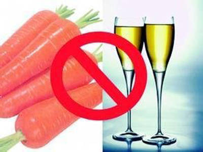 最近,美國食品專家告誡人們:酒與胡蘿蔔同食是很危險的。專家指出,因為胡蘿蔔中豐富的β胡蘿蔔素與酒精一同進入人體,就會在肝臟中產生毒素,從而引起肝病。特別是在飲用胡蘿蔔汁後不要馬上去飲酒。