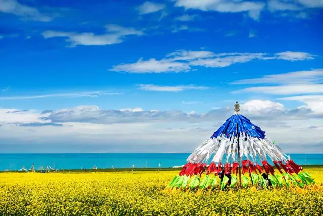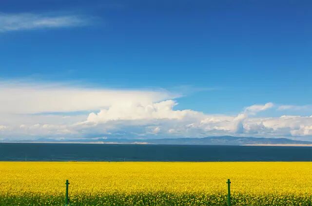 山峰,云朵,青黄的油菜花,洁净的天空,碧蓝的湖水,光是想想就很美!