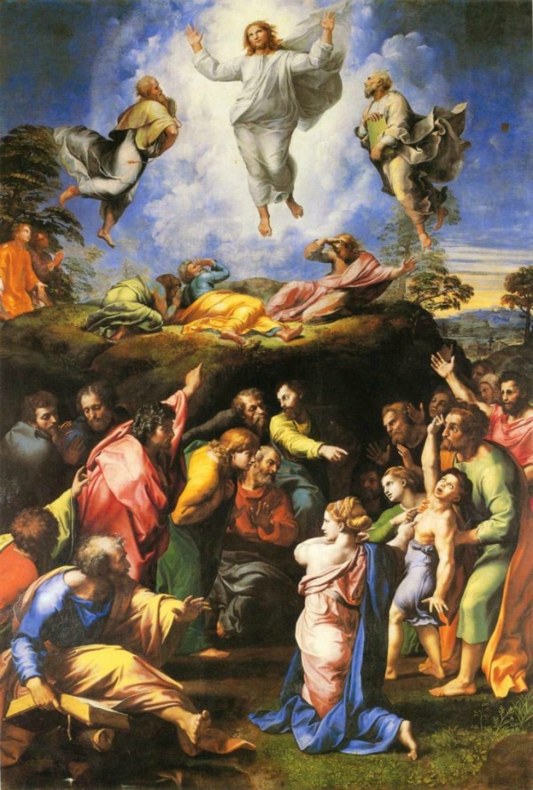 不過這幅畫在學術界有爭議。大家普遍相信,畫的上半部分,也就是藍色背景,耶穌的部分,是拉斐爾的真跡。而下半部分,地上的人物,是出自其他人之手。因為在行家眼裡,上下兩部分明顯不是一個畫風,不是同一個人的作品。