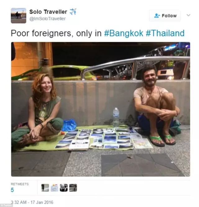 Went BackPacking in my 20's around the World for a year. Saved up for a few years before we went.... then WORKED in Australia New Zealand etc. Didn't sit on our asses in 'poorer' countries with a begging bowl. These kids are despicable.我20來歲的時候用了一整年背包環遊世界。我們去之前攢了好幾年的錢,然後還在澳新打過工。從來沒有一屁股坐在“貧窮”國家街頭,擺個碗乞討。這些小孩真是太可鄙了。