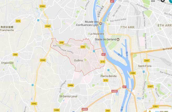 一台湾旅行团日前在位于法国里昂市西南部的乌兰镇(Oullins)观光时,被抢走4万欧元。(案件发生地位置截图)