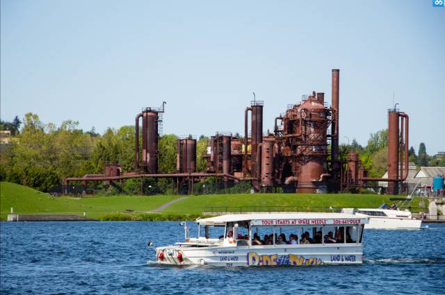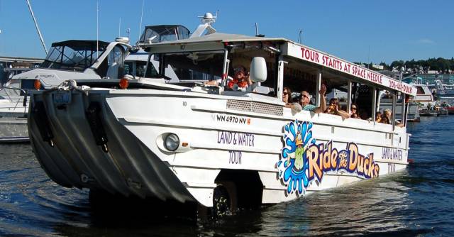 鴨鴨車從西雅圖中心出發,在一個半小時的旅行中,從陸地到水上,能夠逛遍西雅圖的許多主要景點。不論乘坐之前的心情如何,當你坐上了鴨鴨車之後都會被車長的激情所渲染。鴨鴨車車長都是能說會唱會表演的高手,一路上講著笑話,放著勁爆的音樂,還會帶領大家拍手尖叫,每位乘客都會隨之情緒高漲,特別快樂。