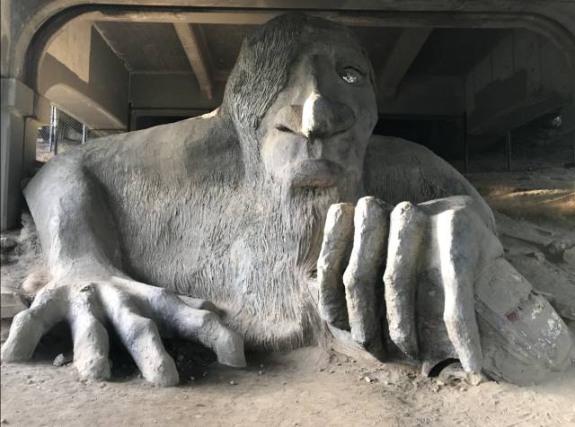 影片中還出現了西雅圖費瑞蒙街區的地標性建築——費瑞蒙怪獸,這個怪獸位於歐若拉橋之下,高約5.5米,手裡壓著一輛福特汽車,看樣子想要破橋而出。在過聖誕節的時候當地人還會為怪獸化妝打扮,讓怪獸變得一點都不可怕,反倒格外的可愛。