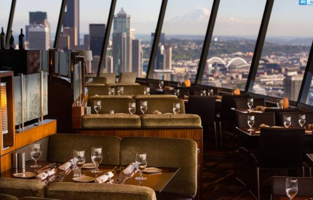 天空之城餐廳是太空針塔頂層的360度旋轉餐廳,可以在47分鐘內360度的全方位觀賞到西雅圖景觀。一邊享受著美國西北風格的美食,一邊在高空中欣賞著旋轉下靜靜變換的景色,對於任何人來說都會是一次完美而難忘的就餐體驗。儘管天空之城的就餐價格並不便宜,但這裡的食物相當精緻,如果要是節假日去那裡用餐,一定要提前預約,因為這裡總是非常的搶手。而且,如果在餐廳就餐,還可以免費到太空針塔頂層的觀景台欣賞外面的景色。