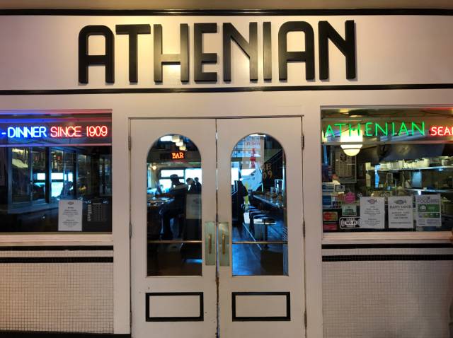 其實,Athenian海鮮餐廳創辦於1909年,至今已有一百多年曆史,裡面空間很大,二層還有用餐區。而且除了吧台位置之外,其餘每個座位都可以欣賞到對面美麗的海景。